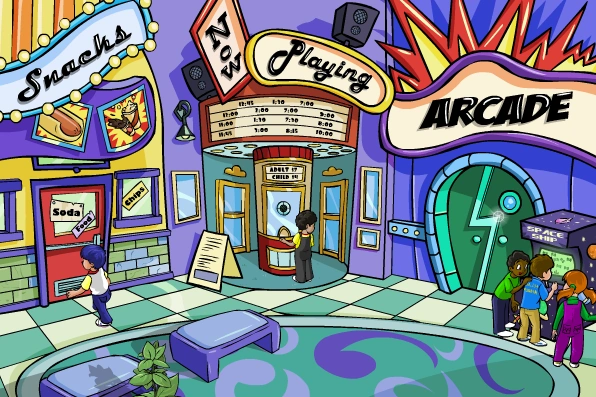 This is where the action is! Meet your friends here, hang out at the snack bar and pick up some popcorn or a candy bar. When you're done, you can drop by the theater and check out a movie or two. Then, if you've got some spare change, you can spin over to the arcade to play the latest and greatest video games!